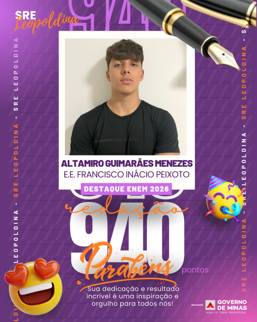 A conquista desses estudantes reforça o papel da educação pública mineira como ferramenta de transformação social. A SRE Leopoldina parabeniza todos os participantes e reafirma seu compromisso em continuar investindo em práticas pedagógicas que preparem os jovens para os próximos passos na vida acadêmica e profissional.
