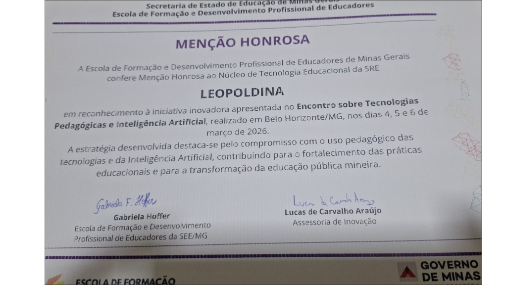 Esse resultado reafirma o protagonismo da SRE Leopoldina no cenário estadual, consolidando a nossa regional como um polo de referência e criatividade na aplicação de novas tecnologias para a transformação da educação mineira.
