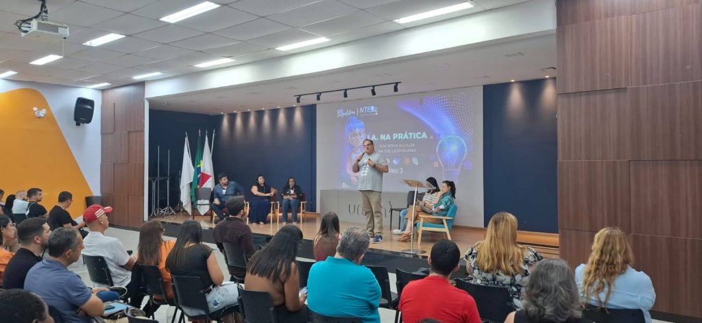 Um dos momentos mais aguardados da programação foi o espaço destinado à apresentação de práticas exitosas realizadas pelos Núcleos de Tecnologias Educacionais em todo o estado. Em um processo seletivo entre as 47 regionais, apenas seis práticas foram escolhidas para serem compartilhadas no palco principal do evento, onde o NTE Leopoldina ocupou duas dessas vagas, demonstrando sua liderança técnica e criativa.