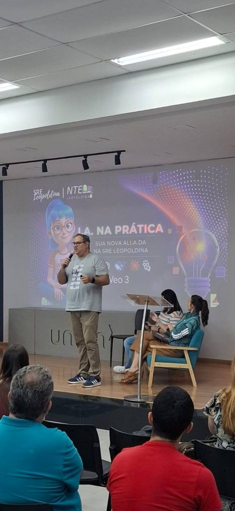 “I.A. na prática: sua nova alI.A.da na SRE Leopoldina”: Iniciativa que foca na aplicação direta e funcional da Inteligência Artificial no cotidiano da regional, reforçando o papel da tecnologia como uma aliada estratégica para a eficiência administrativa e pedagógica.