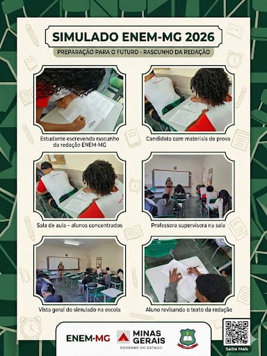 A preparação é um fator decisivo para que os estudantes alcancem bons resultados no Exame Nacional do Ensino Médio (Enem). Com esse objetivo, o Governo de Minas Gerais, por meio da Secretaria de Estado de Educação de Minas Gerais (SEE/MG), iniciou, nesta terça-feira (14), a aplicação do 1º Simulado impresso Enem MG 2026. A iniciativa envolve cerca de 3 mil estudantes de 26 escolas de Ensino Médio e da Educação de Jovens e Adultos (EJA) da rede estadual.